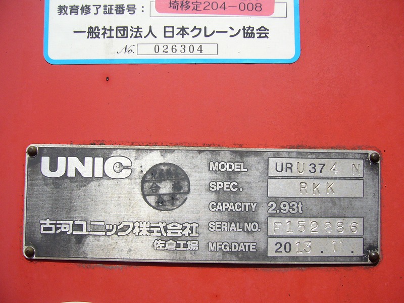 | 型式 | URU374NRKK | 製造番号 | F152886 |