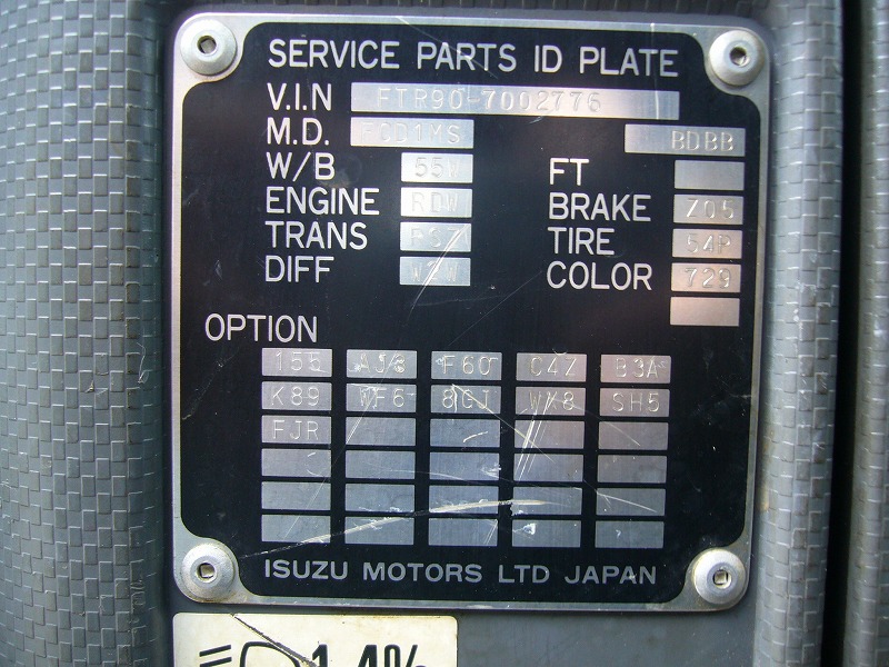 | 走行距離 | 378211 | タコグラフ | 欠品 |